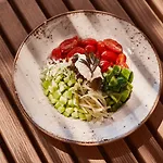 Sirve un desayuno buffet cada mañana. Los huéspedes pueden visitar el restaurante Mazi y el bar en la piscina del Theros All Suite Hotel - Adults Only Cos.